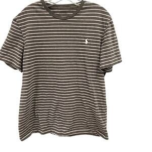 Ralph Lauren Polo Gray Striped Soft Cotton Tee Custom Fit Casual Preppy Classic