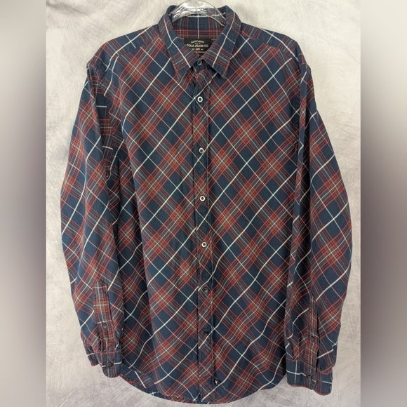 Ralph Lauren Polo Jeans Co Size Medium Button Down Shirt Navy/Red Diagonal
