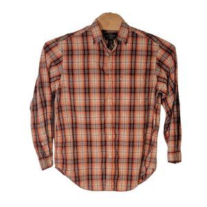 Ralph Lauren Polo Jeans Company Button Up Shirt Orange Tan Plaid Size Medium