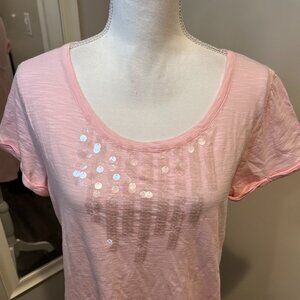 Ralph Lauren Polo Jeans Company Pink Sequined Short Sleeve T-Shirt, Size Large