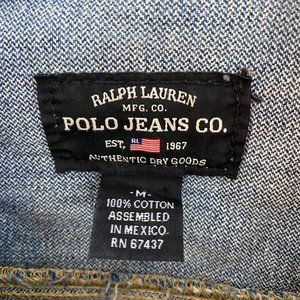 Ralph Lauren Polo Jeans Co. Distressed Rocker Denim Trucker Preppy Ripped Jean Jacket. This denim jean jacket has been manufactured to feel more vintage, relaxed, and lived in look by featuring all mover chewed, holey distressing and fading.