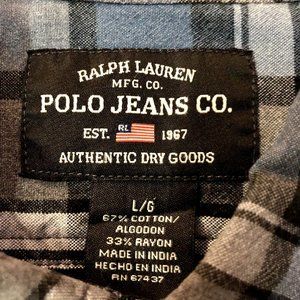 Ralph Lauren Polo Jeans Shirt Mens L Used Blue Plaid