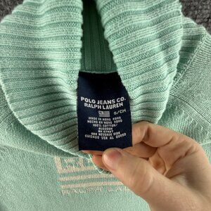 Ralph Lauren Polo Jeans Women Flag Sweater Light Blue Turtleneck Small Cotton