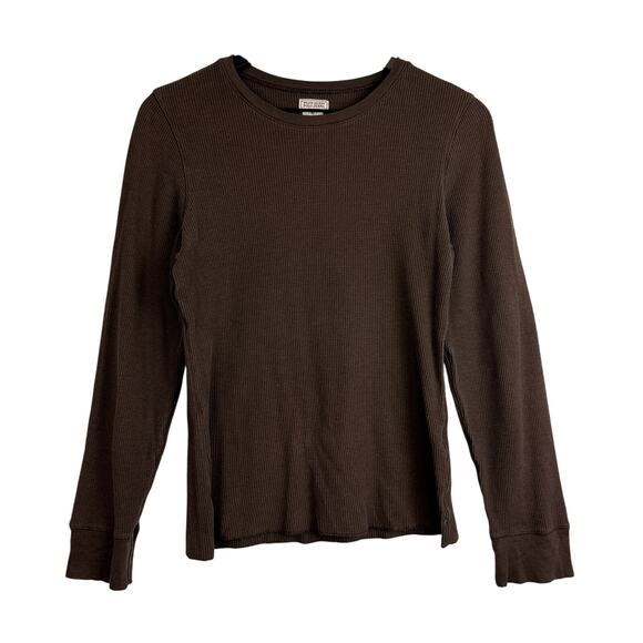 Ralph Lauren Polo Jeans Womens Waffle Knit Thermal Long Sleeve Shirt Brown - M