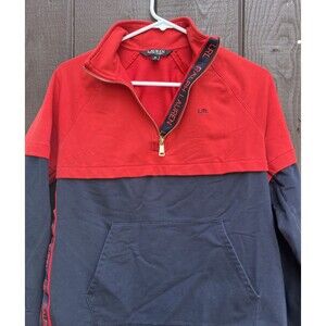 Ralph Lauren Polo LRL Women's Red & Navy 1/2 Zipper Pullover Top Size Medium