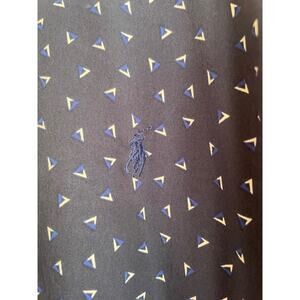 Ralph Lauren Polo men's performance long-sleeve, button-down shirt in 2XL Tall. It is navy blue with white design. It is 93% nylon / 7% elastane. Very soft silky feel.