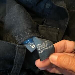 Ralph Lauren Polo men's size 31/30 straight leg 100% cotton black pants. RL embroidered on right coin pocket. Leather patch on back right. In great condition from a smoke free home.