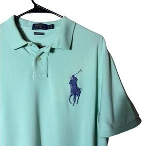 Ralph Lauren Polo Mens Big Pony Custom Fit Mesh Polo Shirt XL Logo Preppy Blue