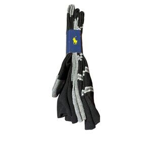 Ralph Lauren Polo Mens Crew Socks 3-Pack Black Gray Striped Size 10-13 NWT