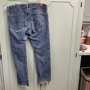 Great condition mens size 35X30 classic denim jeans in a medium wash, light distressing at the bottom hem as shown, classic 5 pocket design