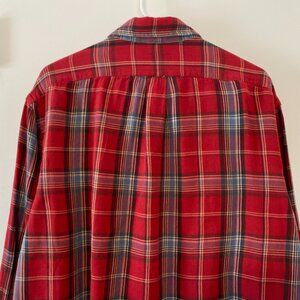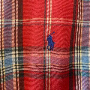 A gorgeous red plaid double-faced button-front shirt from Ralph Lauren that is in EXCELLENT condition - please see photos! Size is a men's XL. Material is 100% cotton. Ralph Lauren's signature polo horse is on the left chest.
