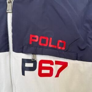 Ralph Lauren Polo P67 Full Zip Performance Hoodie Jacket White Blue Red Large