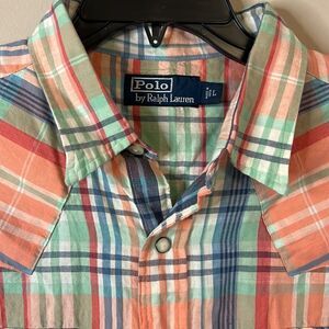 Ralph Lauren Polo Plaid Snap Front Button Down - Size Large