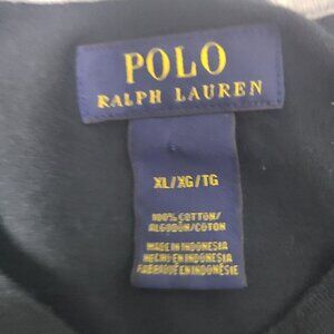 This Ralph Lauren polo shirt is a timeless piece for any wardrobe. The classic black color with a red pony logo accents the solid pattern and crew neckline. The short sleeves and XL size provide a comfortable fit for any season, while the knit cotton material makes it machine washable for easy care.