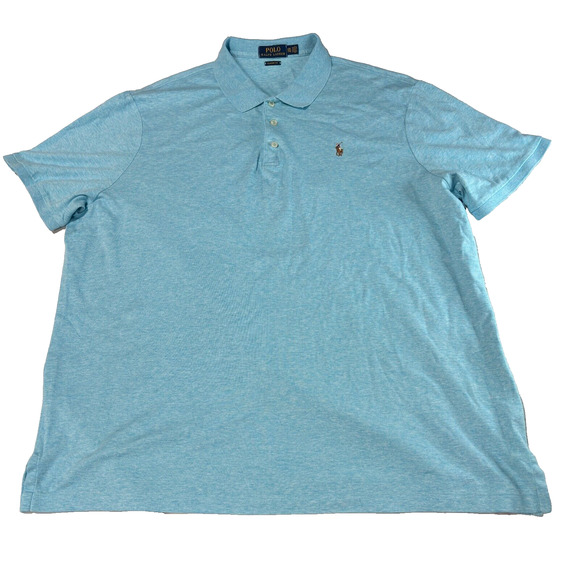 Ralph Lauren Polo Shirt Blue Pima Cotton Flesh Pony Men's 2XL Classic-Fit