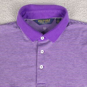 Ralph Lauren Polo Shirt Men Small Purple Gray Striped Golf Wicking Casual Golfer