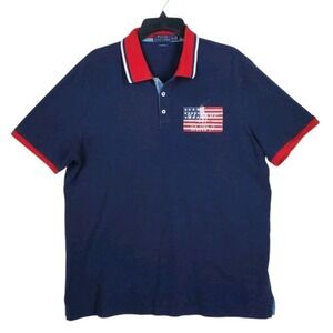 Ralph Lauren Polo Shirt Mens XL Blue Red USA Flag NY Supply Co Patriotic SS