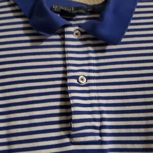 Ralph Lauren Polo Shirt XLT stripe blue white short sleeve