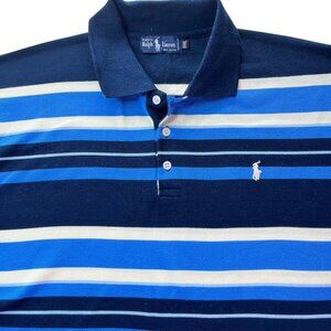 Ralph Lauren Polo Shirt XXXL Navy Blue Striped Short Sleeve Classic Fit Cotton B
