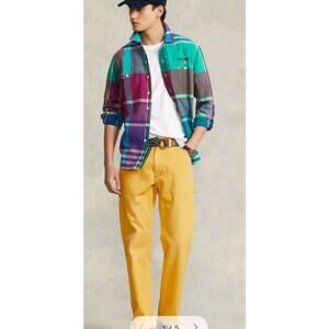 Ralph Lauren Polo Sport Yellow Carpenter Jeans Men 34 Relaxed Straight Fit New