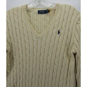 Ralph Lauren Polo Sweater Medium Cream Pullover Cable Knit Pony
