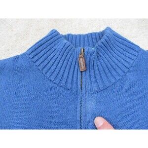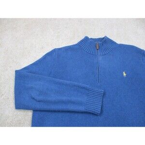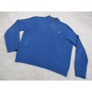 Up for sale is a - Ralph Lauren Polo Sweater Men Large Blue Pony Knit Cotton Zip Golf Preppy *