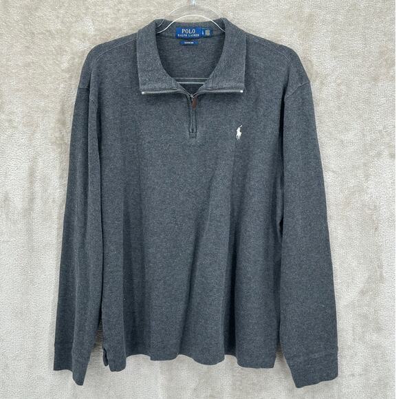 Ralph Lauren Polo Sweater Mens Large Gray 1/4 Zip Estate Rib 100% Cotton Preppy