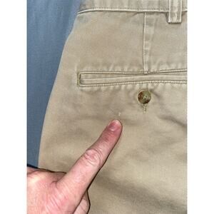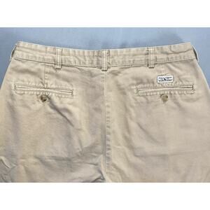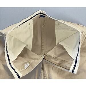 This sharp looking pair of shorts by Ralph Lauren comes in a classic and versatile beige. There is are small/faint stains to the left thigh and right cuff (see pics). This looks like it should come out with some spray and wash, but we didn't try so can't say for sure. In any case, it is not very noticeable even as is unless being looked for. The shorts are otherwise in great condition with crisp color and fabric, and no other noted defects. These still look awesome and appear to have a ton of life left in them! We encourage you to use the zoom feature on our photos and we think you'll agree that this is a beautiful pair of shorts that will make an excellent addition to your wardrobe. Please let us know if there is an angle or feature not represented that you would like to see prior to purchasing. Thanks for looking!