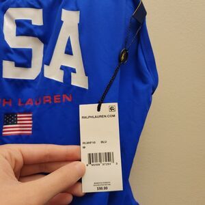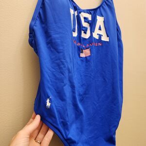 Ralph Lauren Polo Women's Blue One Piece Tank Swimsuit American Flag USA Sz M