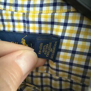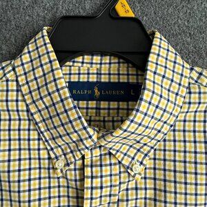 Ralph Lauren Polo Yellow Blue Checked Long Sleeve Button Down Shirt Large