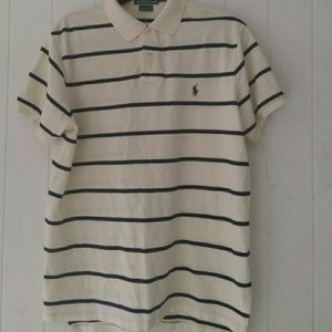 Navy blue and Cream polo shirt with a burgundy polo man is in excellent condition.