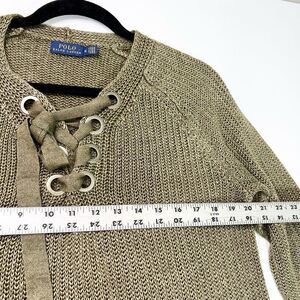 Ralph Lauren Polo Sweater Womens Medium Linen Open Knit Green Long Sleeve