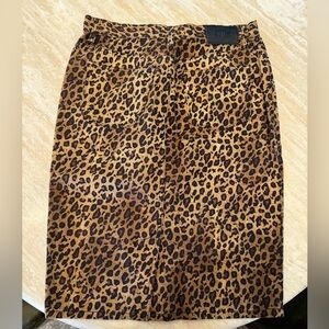 Beautiful knee length leopard skirt—made of 100% cotton so no stretch. In excellent condition!