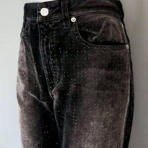Ralph Lauren Purple Label 28 Black Velvet Pants Rhinestone Embellished 105