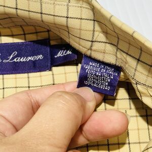 Ralph Lauren Purple Label Beige Plaid Check Long sleeve Button Up Shirt Men Sz M