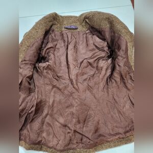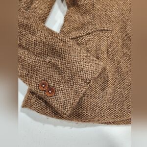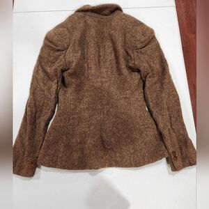Elevate your style with this sophisticated Ralph Lauren brown blazer. Perfect for any occasion, this jacket offers a timeless look with its classic design and rich color. No size tag or fabric tag but it feels like a cashmere/Alpaca blend.