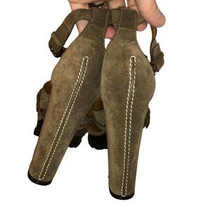 Ralph Lauren Purple Label Collection taupe suede leather lug sole sandal heels
