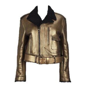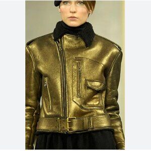 Ralph Lauren Purple Label Fall 2007 Shearling Metallic Gold Motorcycle Jacket