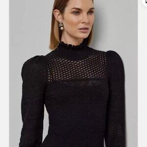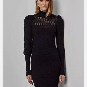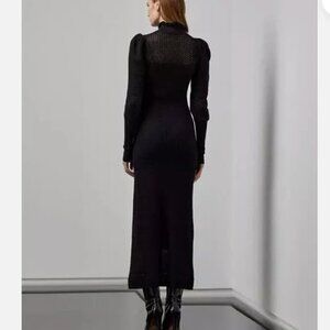 Features: Slim silhouette. Intended to hit at the mid-calf. Turtleneck, Puffed long sleeves. Slip dress lining.