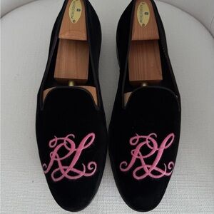 Ralph Lauren "Alonzo" loafers in velvet feature RL script bullion embroidery on the vamp