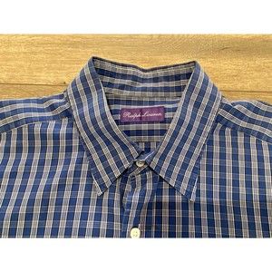 Ralph Lauren Purple Label Mens XL 17 Blue Plaid Long Sleeve Button Up Italy Made