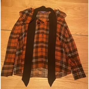 Ralph Lauren Purple Label Plaid Silk Button Up Blouse Top Black Tie Neck S $1490