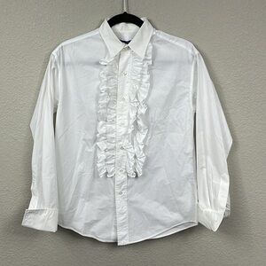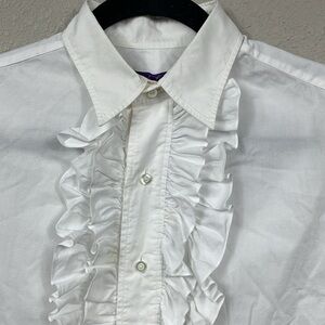 Ralph Lauren Purple Label Ruffle Frill Button Front Shirt Blouse Long Sleeve 6