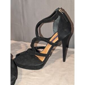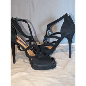 Ralph Lauren Purple Label Shoes Womens 40 B Cross Strappy Heels Black Suede 5"