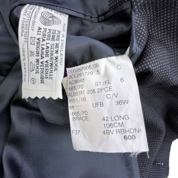 Ralph Lauren Purple Label Suit Blue Wool Blazer Jacket 42L 36x30 Pleated *FLAW