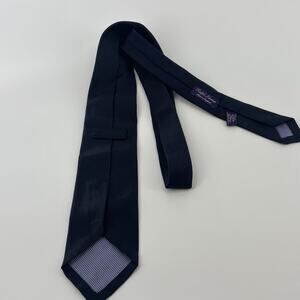Ralph Lauren Purple Label Tie Silk England Solid Navy Blue Handmade