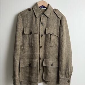 Ralph Lauren Purple Label Tweed Safari Jacket – Brown Herringbone