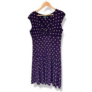 Ralph Lauren Purple Tan Polka Dot A-Line Dress Size 14 Spring Summer Wedding