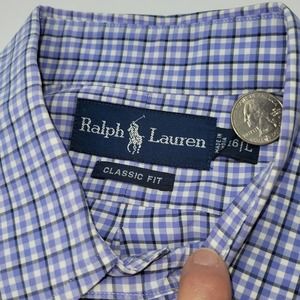 Ralph Lauren Purple and White Check Men's Shirt Classic Fit Size 16 L