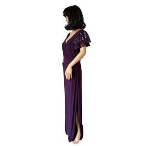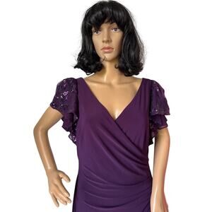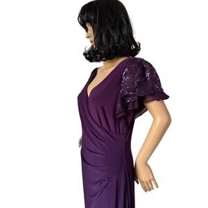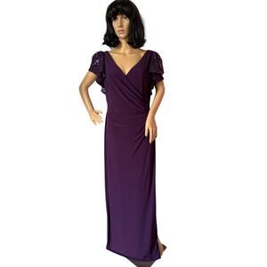 Ralph Lauren Purple sequin Flutter Sleeve Mock Wrap Glam Maxi formal Dress 10